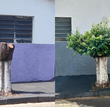 A poda, seja ela imposta ou autoimposta, vai gerar cicatrizes, mas podemos permitir que nossas emoções possam florescer e transformar vidas, aprendendo com as novas experiencias e fortalecer a autoestima. Podendo viver um processo de conhecimento de si mesmo, e de mudança continua, sempre se fortalecendo. Nós mulheres, podemos aprender uma com a outra. podemos nos apoiar umas às outras durante os momentos de "poda”. Como as árvores em uma floresta, elas podem se fortalecer juntas, frondosas, exuberantes. A poda, tão presente na natureza, encontra um eco profundo na jornada da mulher. Assim como a árvore necessita de poda para florescer com vigor, a mulher, em sua trajetória, enfrenta "podas" que, embora dolorosas, são cruciais para o seu crescimento e assim dando sombra, refrigério, renovo