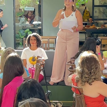 O ponto alto do encontro foi a dinâmica “O DNA da Minha Marca”. Guiadas por uma metodologia prática, as participantes puderam olhar para seus próprios nomes não apenas como uma assinatura, mas como a marca fundadora de sua identidade. Foi um momento de reconhecer que cada desafio superado é, na verdade, a matéria-prima da nossa autoridade.